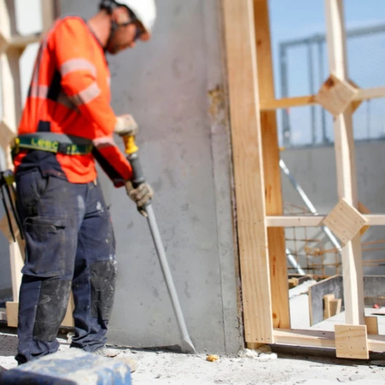 Pour décaper/nettoyer une dalle béton, ajuster une pré-dalle, nettoyer les coulures de béton entre le mur et la dalle béton après le banchage, percer un regard, fendre des bordures…