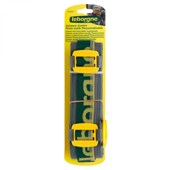 Ceinture sur laquelle peuvent se monter différentes poches et accessoires permettant ainsi aux professionnels du Bâtiment (Maçons, Charpentiers, Bâtisseurs de Maisons Ossature Bois) de composer eux-mêmes leur ceinture porte-outils sur mesure.