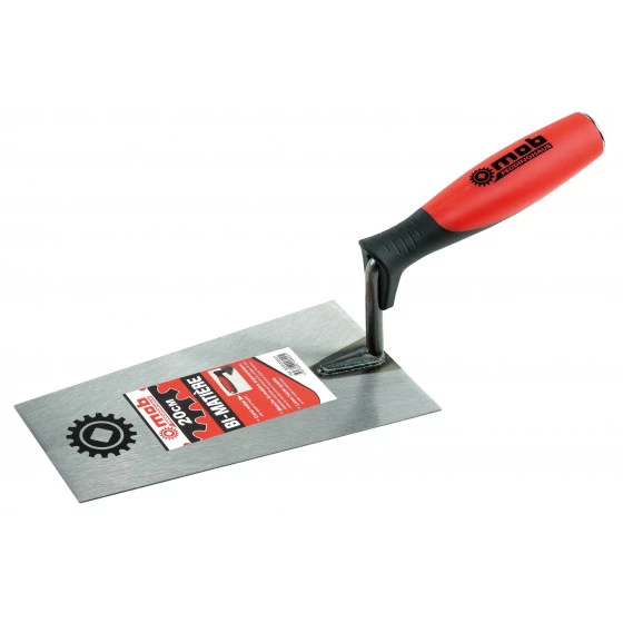 Lame en acier traité de haute qualité, souple mais indéformable. Patte forgée, diamètre 1 mm. CULOT Culot métal, pour ajuster en frappant sur le manche sans l’abimer. MANCHE BI-MATIÈRE Résistance aux produits chimiques utilisés dans le bâtiment et insensible à l’eau. Elastomère confortable qui descend pour protéger la main. Forme du manche ronde pour une prise en main efficace. Repose-doigt sur le dessus. Bi-matière : les parties nécessitant du grip sont en élastomère et les parties lisses en polypropylène. Nettoyage facile.